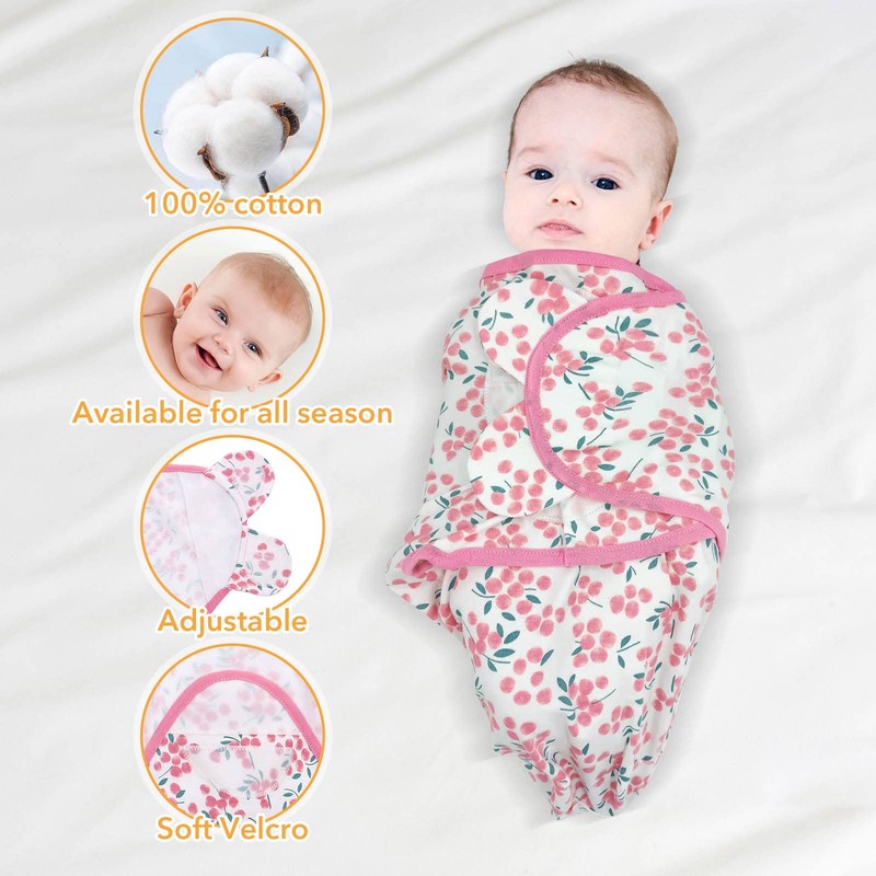 3Pcs Swaddle Blankets Swaddling Wrap for Baby,Swaddle Sleeping Bag Newborn Adjustable Breathable Soft Cotton (Cherry, Small)