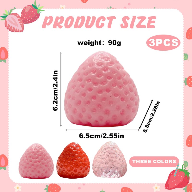 - Adorable Design: The strawberry squishy features a fun and cute strawberry design that looks incredibly realistic. Its charming appearance makes it irresistibly, mini perfect for bringing joy and relaxation to your day.