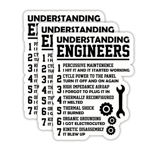 (3PCS) Understanding Engineers Sticker, Funny Engineer Stickers – Tech Support Quote Decal, Gift for Engineering Students, Developers, Mechanics and Tech Lovers 3" x 2.3"