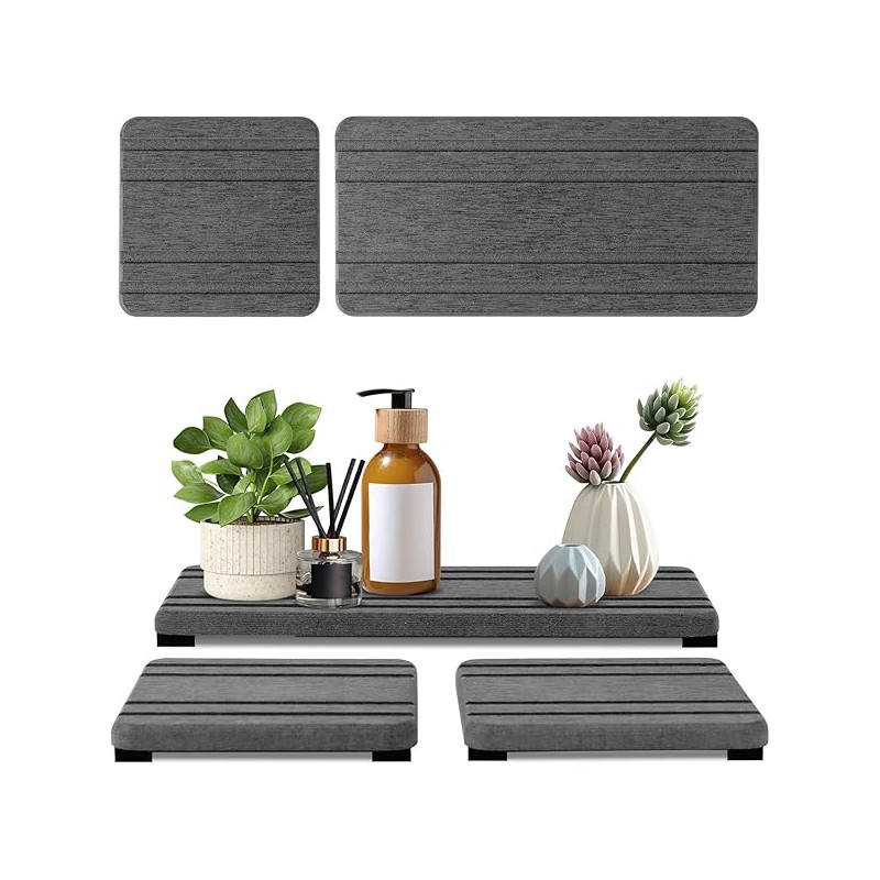 3PCS Water Absorbing Stone Tray, DryingNeat Diatomite Stone Sink Tray, Instant Dry Sink Coasters, Kitchen Sponge Hand Soap Holder, Countertop Fast Drying Counter Tray,8 * 4inch and 4 * 4inch
