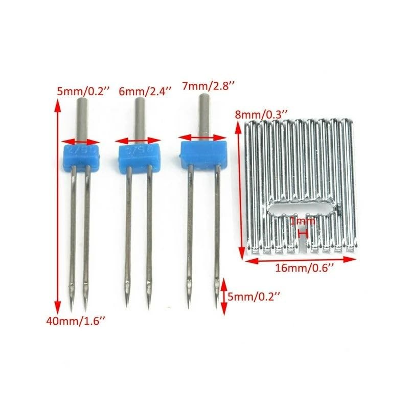 - Twin Stretch Needles: The needles are designed as twin stretch needles, which are commonly used for sewing with elastic or stretch fabrics. The double twin needles allow for two parallel rows of stitching, often used for decorative or functional purposes.