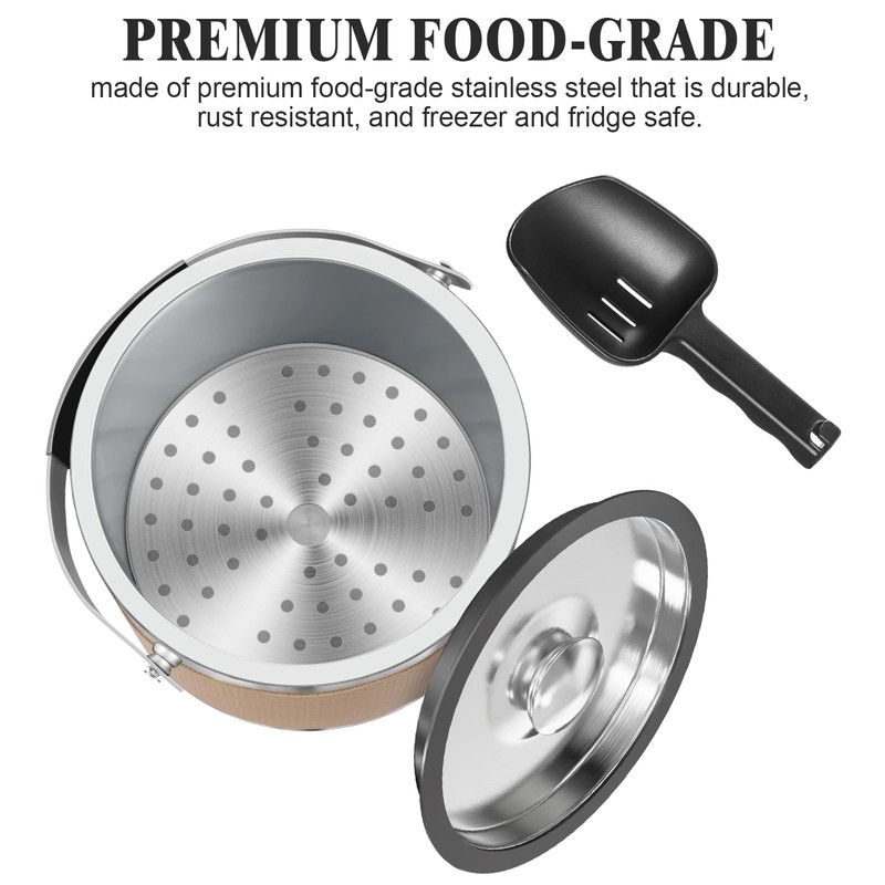 - 【100% BPA FREE】Our ice bucket with scoop is the perfect tool for keeping ice at parties, cocktail bars, picnics, barbecues, and beach outings. It's the perfect size for any gathering. Our premium condensation-free ice bucket comes with a matching stainless steel lid and an easy-to-use scoop for effortless ice serving