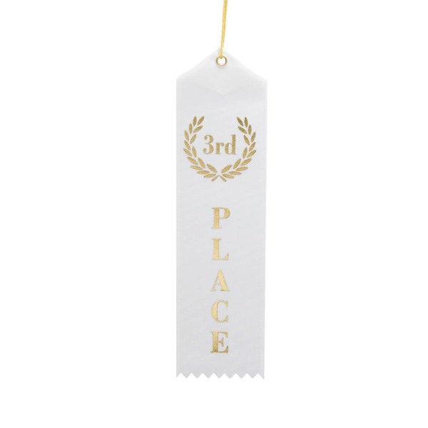 3rd Place (White & Gold) Award Ribbons with a Card & String (24 Pack)