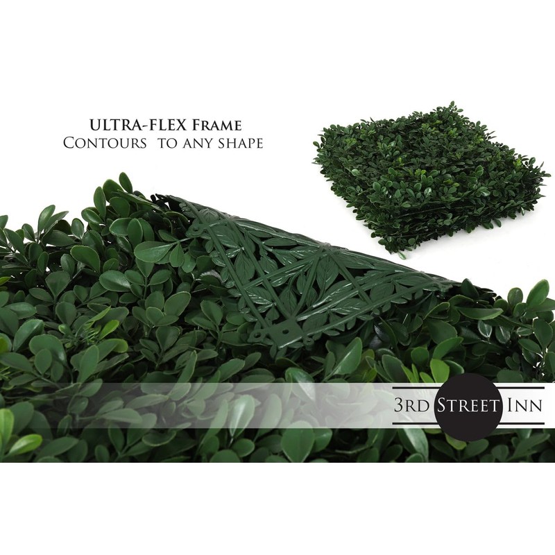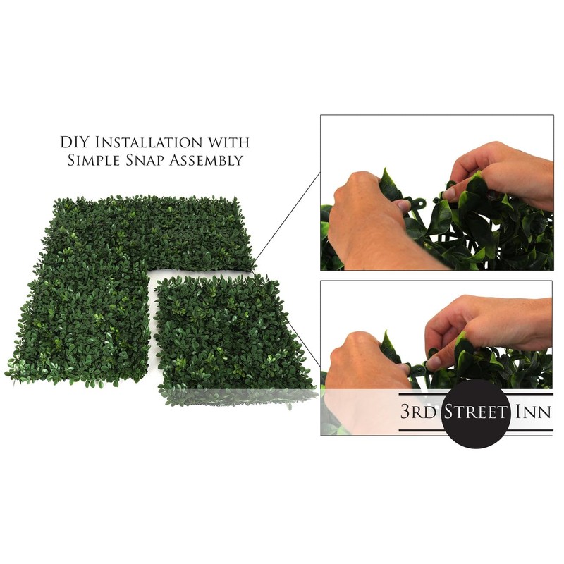3rd STREET INN GREENERY PANELS - 3rd Street Inn offers the highest quality, most realistic, artificial foliage and living walls on the market today. Each 3rd Street Inn Greenery Panel provides 20" x 20" of coverage and is available as a 2-pack, 4-pack, and 12-pack. Our artificial greenery look great on walls, fences, and more. Add 3rd Street Inn green wall panels to your home, office, or wedding decor to bring your space to life! No maintenance, trimming, or watering! Works great for added privacy! (Ultra-flex frame / Interlocking connectors / UV resistant / Water resistant / Noise reduction)