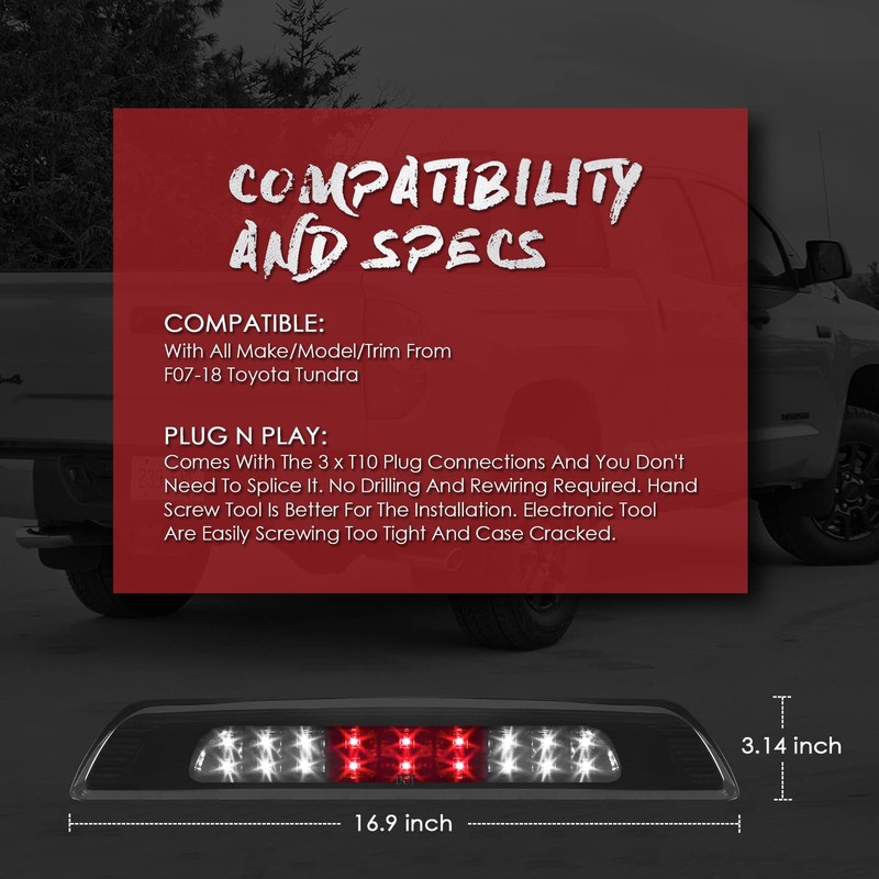 - 【What you get】: 1 X High Mount 3rd Brake Light For 2007 2008 2009 2010 2011 2012 2013 2014 2015 2016 2017 2018 Toyota Tundra.