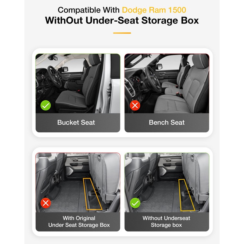 - PERFECT FIT FOR RAM 1500 2019-2024: Custom fit design edge to edge for maximum coverage and protection with TPE (thermoplastic elastomer) material which ensures your more strength, resilience, durability and elasticity, this cargo liner is matchable with Dodge Ram 1500 WITHOUT storage.