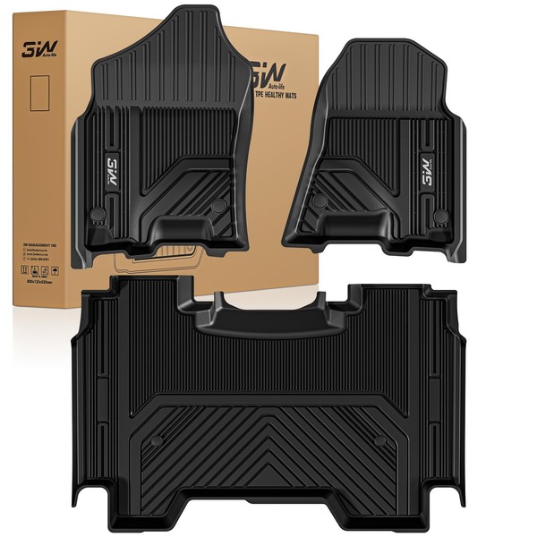 3W Floor Mats Fit for 2019-2024 Dodge Ram 1500 Crew Cab New Body (NOT Classic Models) Without Storage, TPE All Weather Custom Fit Floor Liner for Ram 1500, 1st and 2nd Row Full Set Car Mats