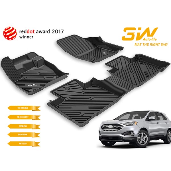 3W Floor Mats Front & Rear Row All Weather Car Liners for 2015-23 Ford Edge TPE
