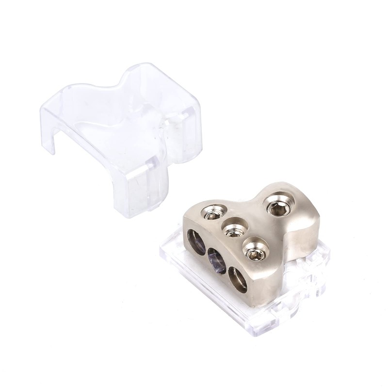 - 2.Wiring type:1x(0/2/4) gauge input,3x(4/8/10) gauge output.Screw-down wire clamps easy to install.