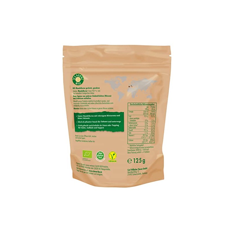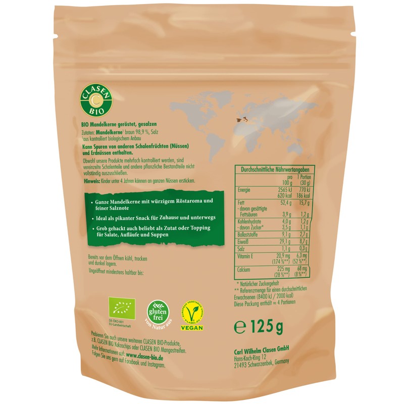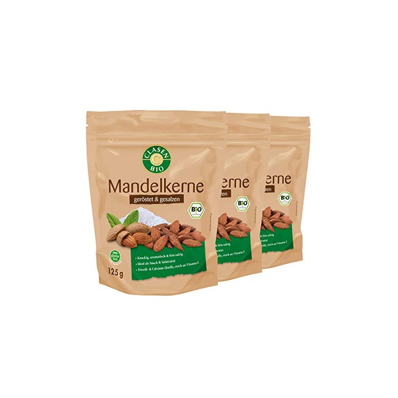 3x CLASEN Organic Almond Kernels Roasted and Salted - 125 g