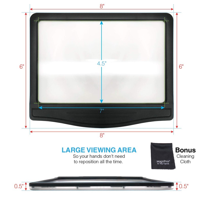 - ★ LARGE VIEWING AREA WITH CRYSTAL CLEAR LENS: Optical grade magnifying lens covers large viewing area without having your hands to move all the time, lens(viewing area) is measured 4.5"x 7" and magnifies up to 300%.