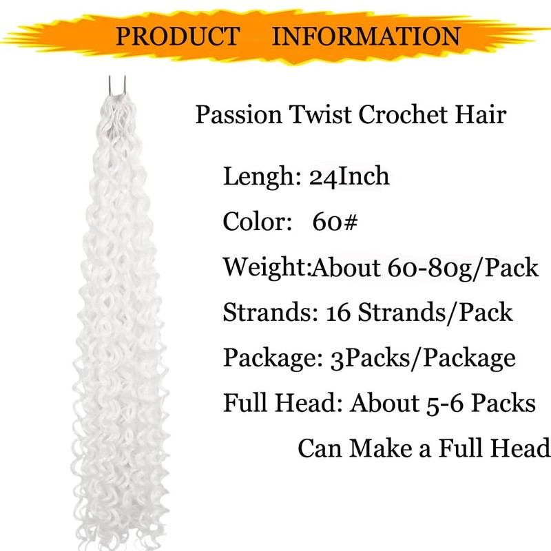 3X Passion Twist Crochet Braids Hair White Pre-Separated Synthetic Curly Braiding Hair 24 Inch 3 Packs Pre-twisted Passion Twist Braiding Hair Pre Looped Crochet 3X Braids for Black Women(24",60#)