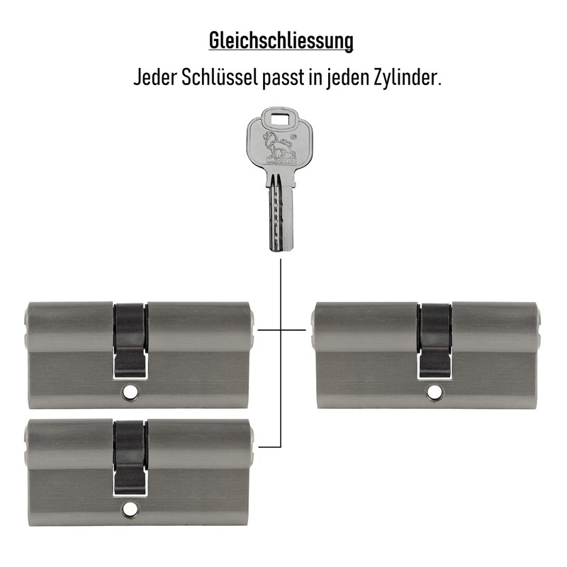 3x Profile Cylinder 65 mm 30/35 Keyed Alike Including 15 Keys
