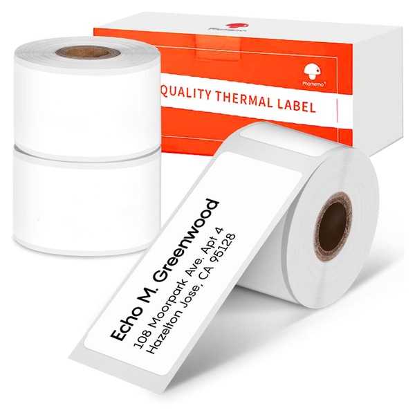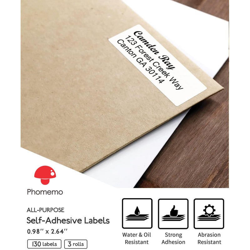 [3x130 pcs] Phomemo Address Labels, 0.98''x2.64'' (25x67mm) M110 M100 M220 M221 M120 M200 Labels, White, 130 Labels/Roll, 3 Rolls, All-Purpose Adhesive Thermal Phomemo Original Labels