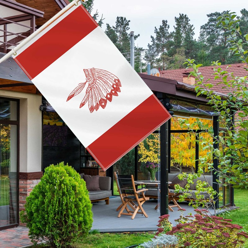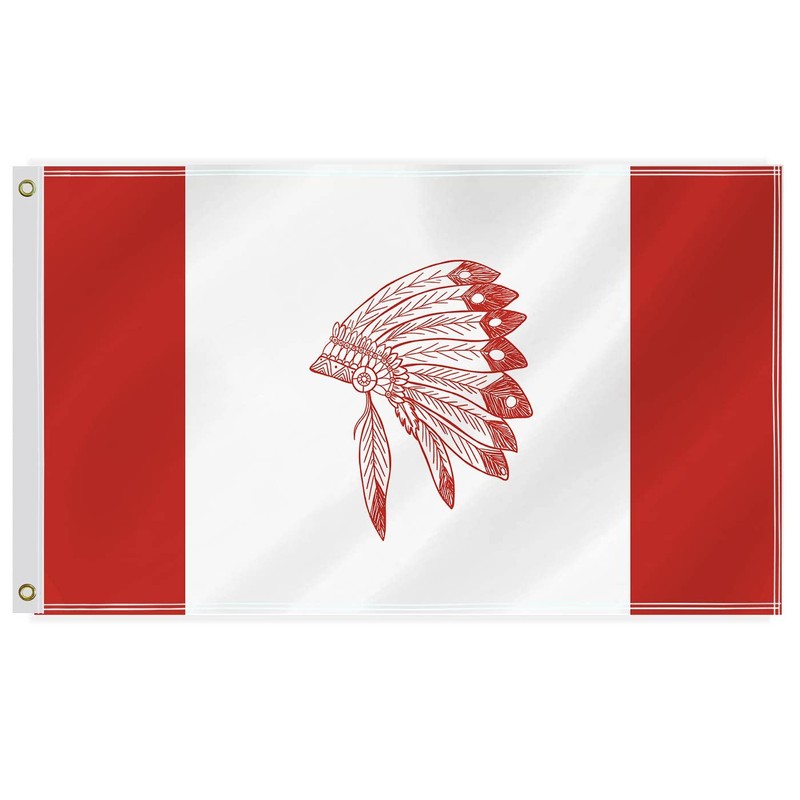 3×5 FT Canada Native Flag,Large Canadian Indigenous Feather Crest Decor,Double Side Digital Printed 150D Polyester Banner With Canvas Header Brass Grommet For Outdoor Indoor Parade Car