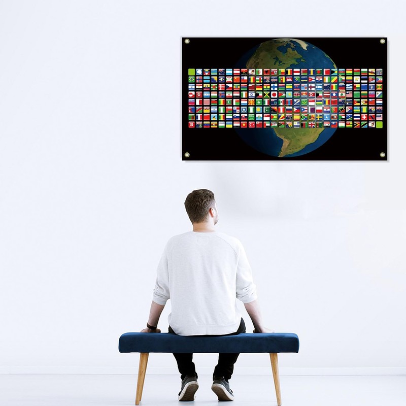 3×5 FT Global Nations Flag,Large Globe National College Funny Dorm Decor,Double Side Digital Printed 150D Polyester Banner With Canvas Header Brass Grommet