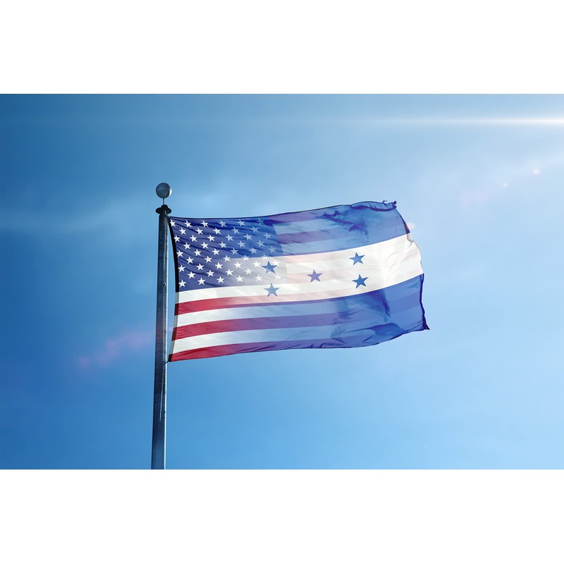 "A new generation of Americans" is the motto that unites the two flags. It was created to unite people from both backgrounds. Whether you're from the Republic of Honduras or born in America you can show your allegiance with this flag and be proud of it.