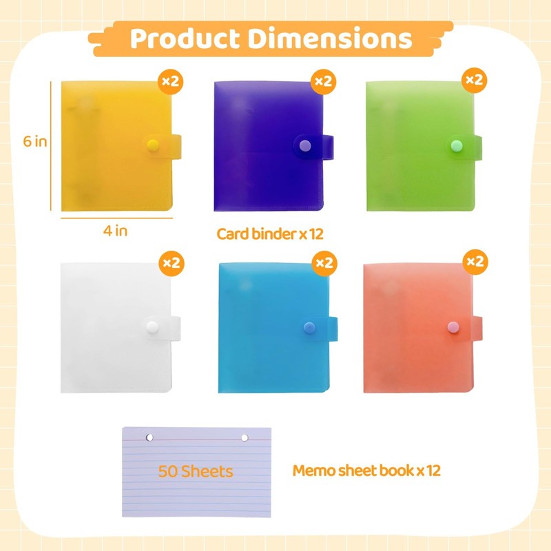 12 PCS Index Card Binder with Dividers, Index Card Holders in 6 Colors with 50 Pages Sheets, Index Cards Binder Index Card Organizer Colored Note Cards for Office Study Classroom Home