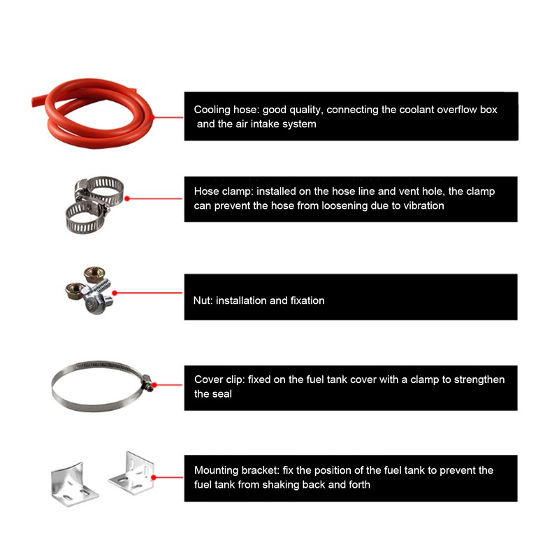 1、The overflow tank connected to the radiator is sufficient to capture any overflowing coolant. 2、The capacity is 27oz/800 ml, which can protect the cooling system and improve the performance of the car. 3、When the engine is running at its best performance, the radiator coolant overflow tank can keep the engine coolant at operating temperature. 4、When the coolant begins to cool, the coolant shrinks, and the vacuum valve in the pressure cap opens, allowing the coolant to flow into the radiator, and the coolant overflow box to return to the radiator. 5、Made of high‑quality aluminum alloy material, wear‑resistant and corrosion‑resistant, not easy to rust, stable performance and long service life.