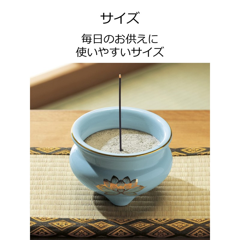 マルエス 御仏具 青磁上金ハス香炉 4.0寸 ブルー