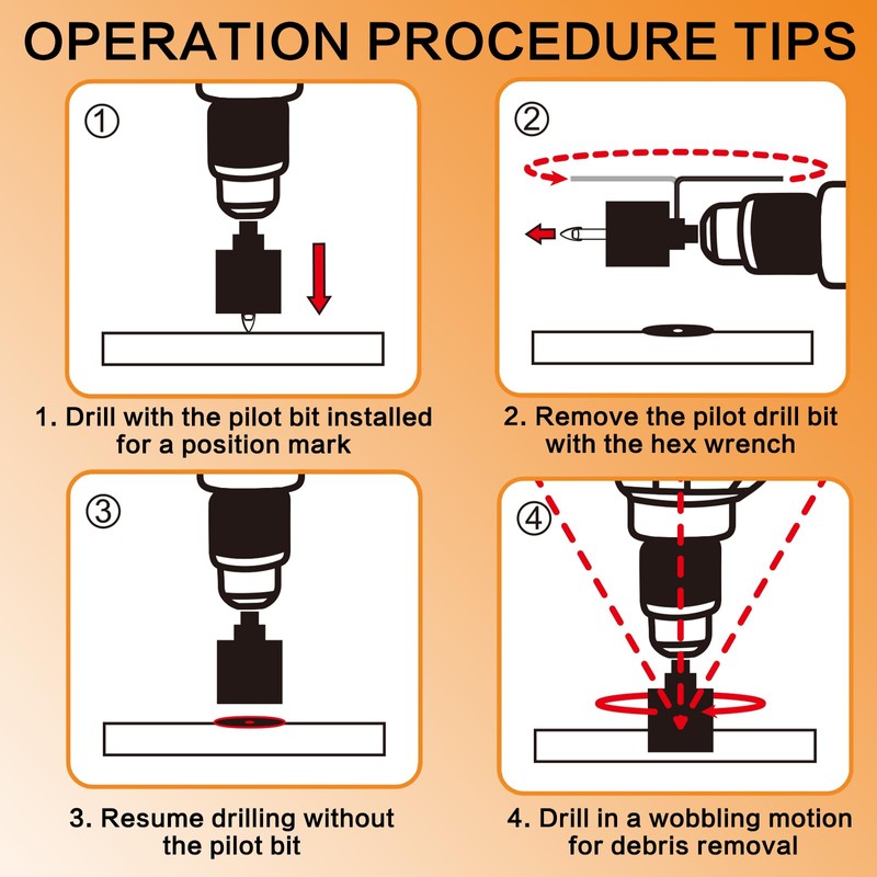 - Instructions for Use: Start with the pilot bit for exact positioning, then remove the pilot bit, and use the main diamond hole saw in a wobbling motion to facilitate debris removal and achieve perfect holes with minimal force.