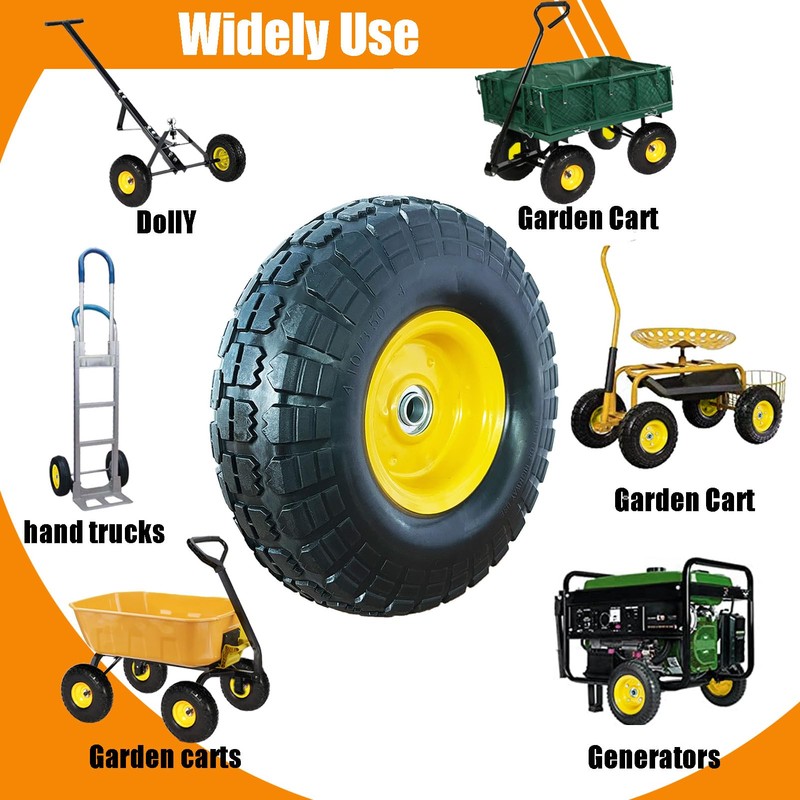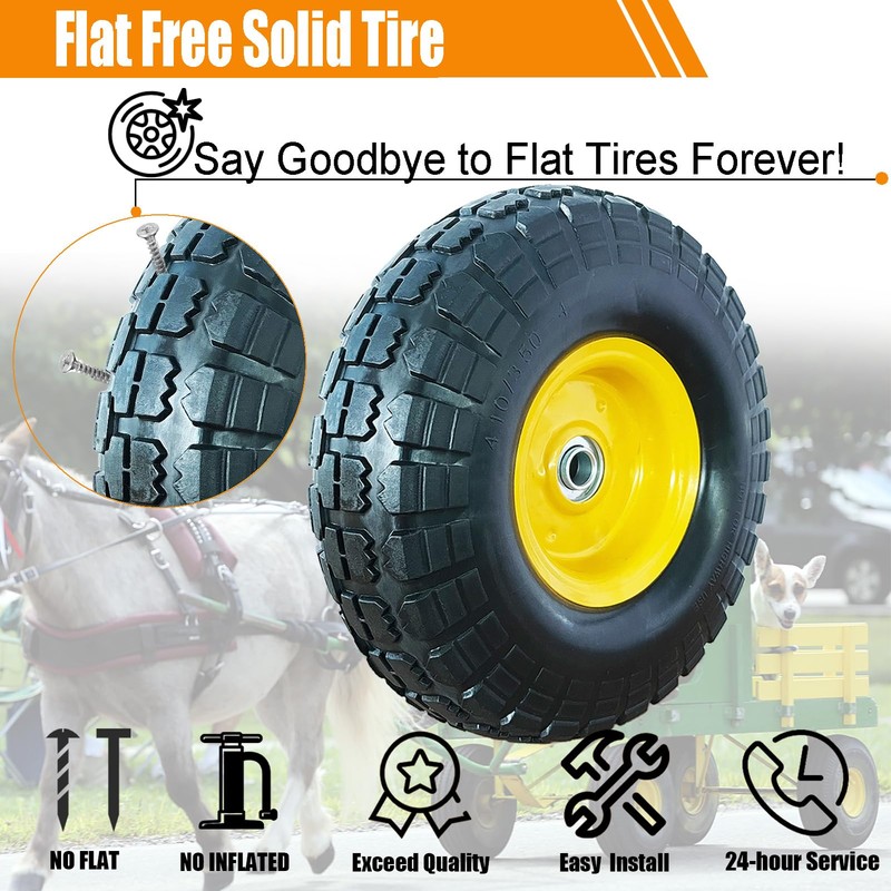 - ✅【High Quality】The Air Less Tires Wheels Made of Heavy duty double sealed bearings will evenly distribute the load on your vehicle,designed with sporty look raised grips to drive the smoothest possible.Made of highly durable materials,the solid and durable construction ensures that the flat free wheelbarrow tire are wear, puncture, tear, and rot-resistant.