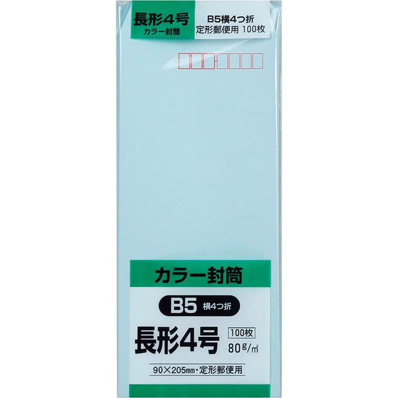 キングコーポレーション 封筒 ソフトカラー 長形4号 100枚 ブルー N4S80B