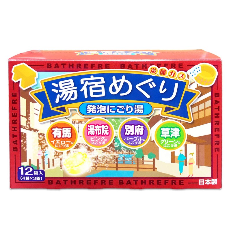 ライオンケミカル バスリフレ 発泡入浴剤 湯宿めぐり にごり湯 4つの香り 炭酸ガス 12錠入(4種×3錠) 医薬部外品
