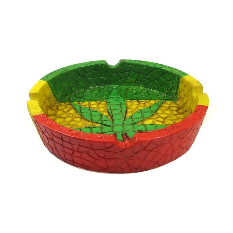 - Ashtray with the Rasta colors and a marijuana leaf, crackle style finish