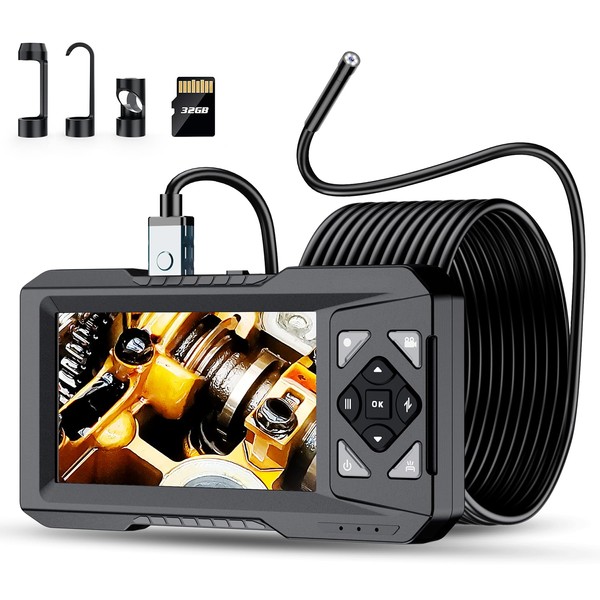 4.3" Endoscope with Light,1080P HD Photo Video Inspection Camera, IP67 Waterproof Borescope with 16.4FT Semi-Rigid Cable,Snake Sewer Camera with 6 LED Lights,32GB SD Card