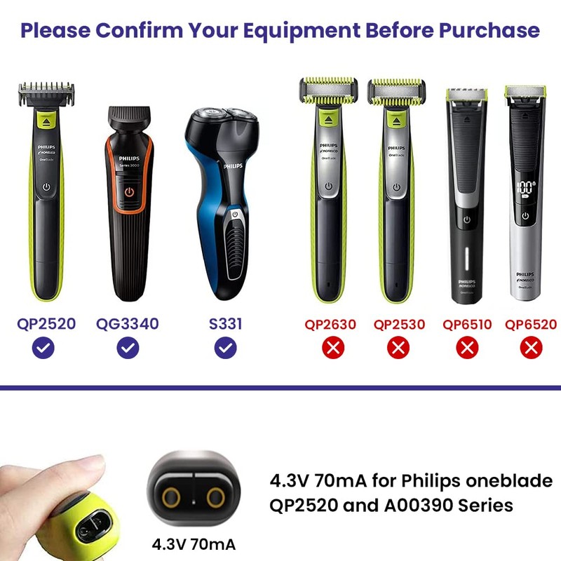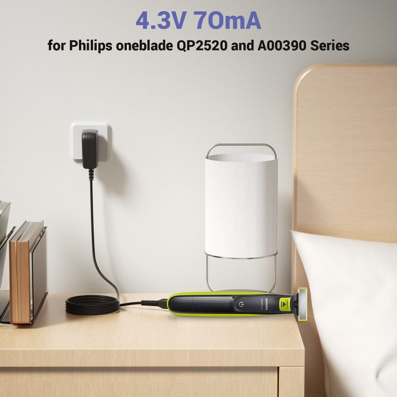 電気かみそり4.3Vアダプター電源コード、フィリップス用シェーバー充電器電源コードA00390フィリップスノレルコワンブレード充電器用4.3V 70mA QP2520 / 90、QP2520 / 70、QP2520/72と互換性があります