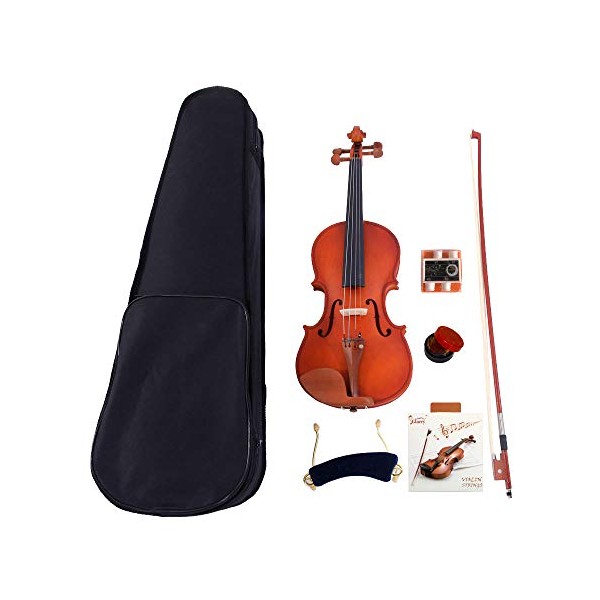 - ? violin with starter kit that?s perfect for beginners, almost everything you need: black violin carrying case, finger guide,rosin and bow. It features improved quality of wood, providing a richer, warmer sound and is professionally set up by our experienced luthiers. Great for Kids Starters.