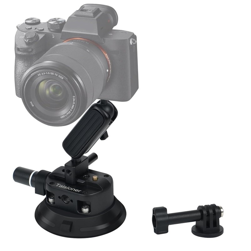 【Pump-activated Powerful Suction Cup Mount】The pump-activated powerful suction cup mount can adhere to most surfaces. As gas is continuously pumped out, the pressure drops to negative levels. Under the influence of external atmospheric pressure, the suction cup is pressed onto the surface of an object, achieving vacuum adsorption. It's suitable for cameras, action cameras, mobile phones, and other shooting devices. The magical articulated arm allows for the installation of your device and offers flexible installation positions.