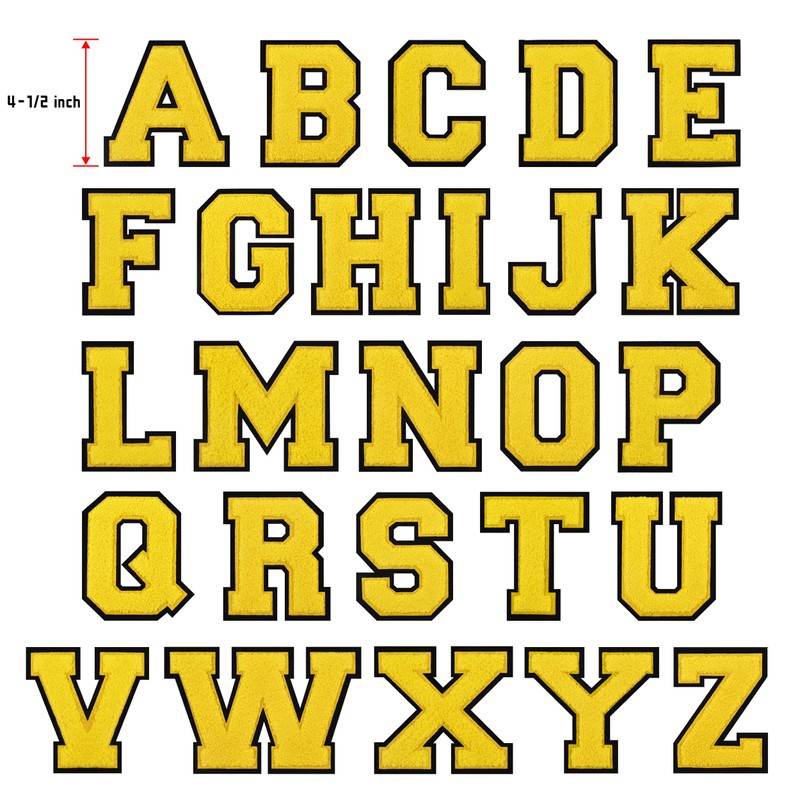 - Yellow chenille letters are 4.5 inches high, and different letter widths are different