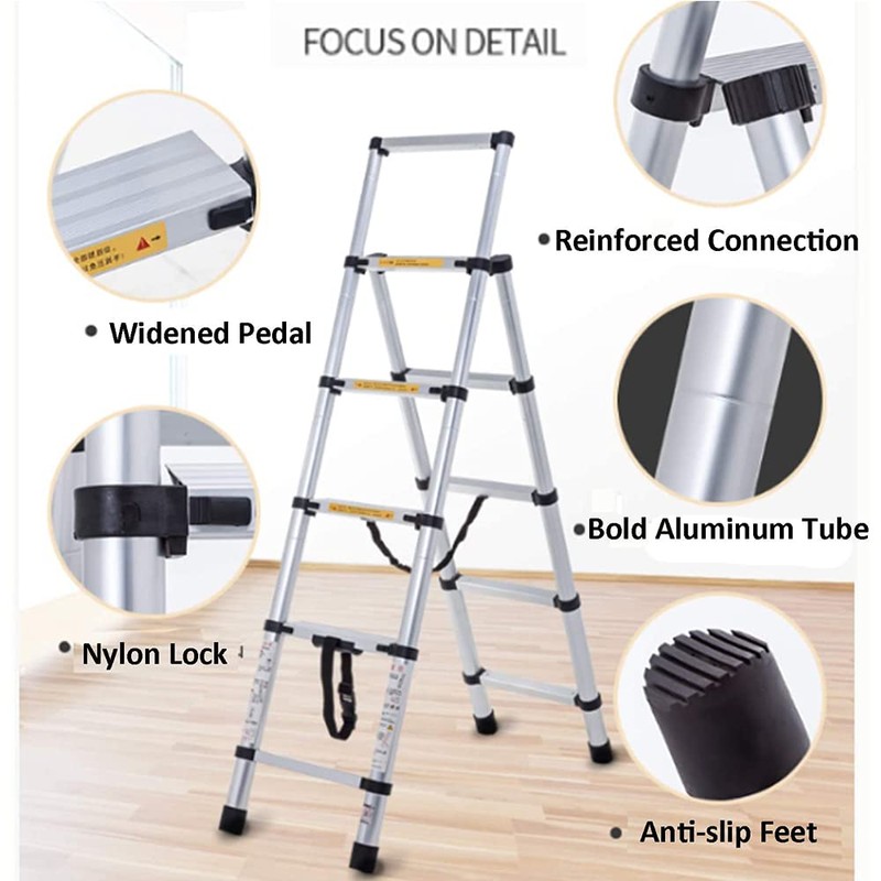 - ⭐High-quality aluminum: The telescopic ladder is made of high-quality aluminum alloy. Corrosion and rust resistance. Lightweight and easy to carry, you can easily carry the ladder with one hand.