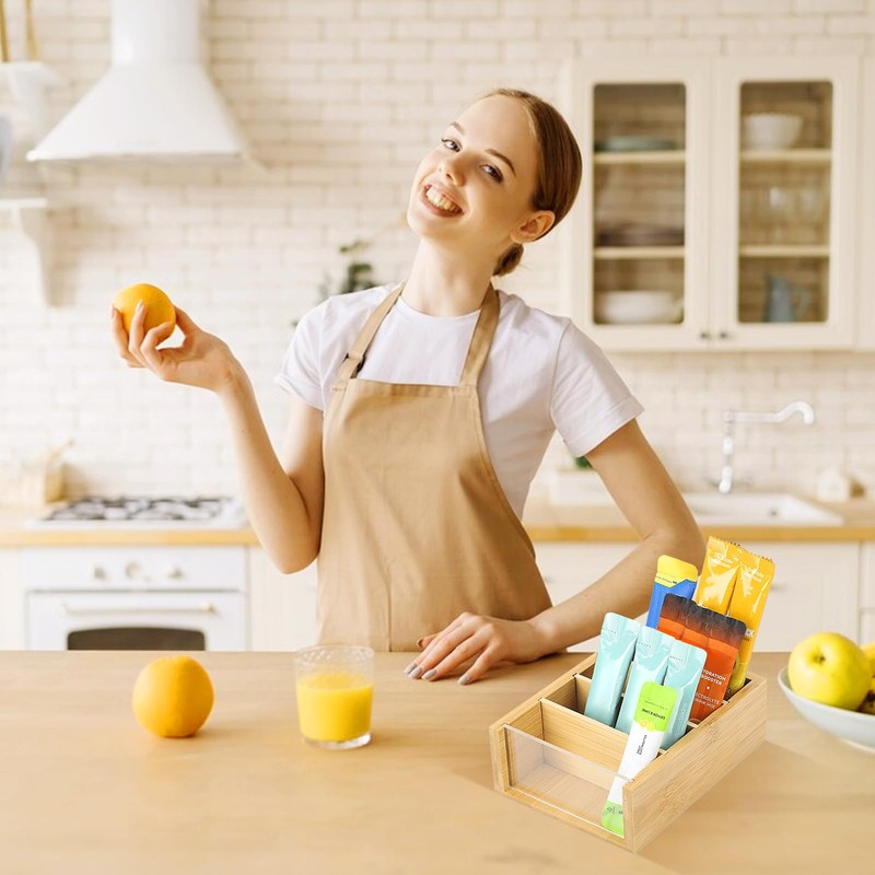 - Elegant and unique -The combination of bamboo and clear acrylic brings a stylish and modern feel, the style is versatile, simple and sophisticated. water flavoring packet organize has distinctive features , making it a perfect gift for family, friends, and colleagues.