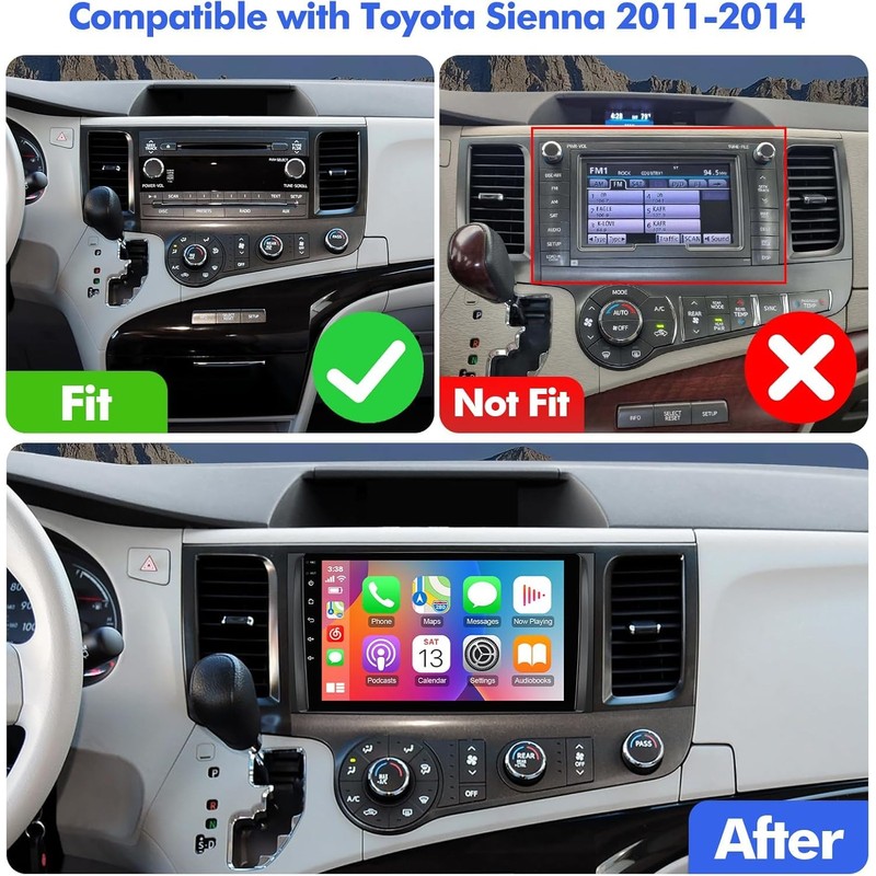 - 【NOTE】: Our Android car stereo works for the Toyota Sienna 2011, 2012, 2013, and 2014. Model and the year just for your reference, please confirm the shape and size of the center console before bidding. If you are unsure, please contact us.