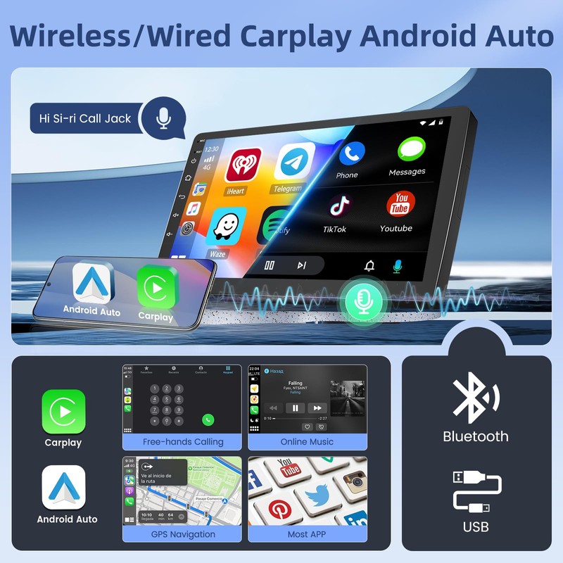 - Seamless Connect to Mobile Phone: Simply connect your mobile phone to the Bluetooth of the car stereo, you can use Carplay or Android Auto to easily access a variety of popular apps such as navigation, video, music, etc. , enjoying the pleasurable experience of smart driving. For toyota sienna radio upport Mirror Link, connect the cell phone hotspot, you can synchronize the mobile phone screen to the car radio for safe driving