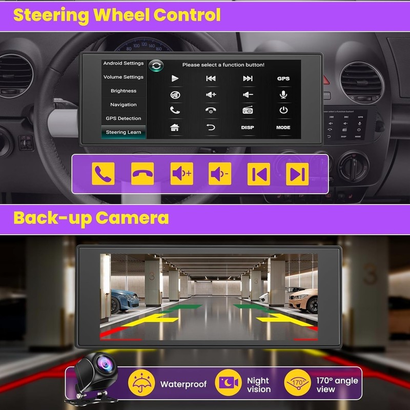6. Rear view function: Support Rear view camera input, backing car more safer and convenient (Free camera come with stereo)