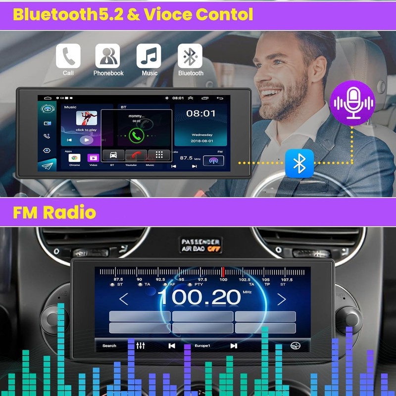 - 🚗【Bluetooth5.2 & MIC & FM Radio】 Double Din Android Car Radio build-in 5.2 bluetooth, allow you to make and receive hands-free calling. It has a built-in microphone and supports both built-in and external microphones, if you feel the voice, you can use the microphone to enjoy clear voice. Additionally, it features an FM radio function, allowing you to enjoy your favorite radio stations on the your journey.