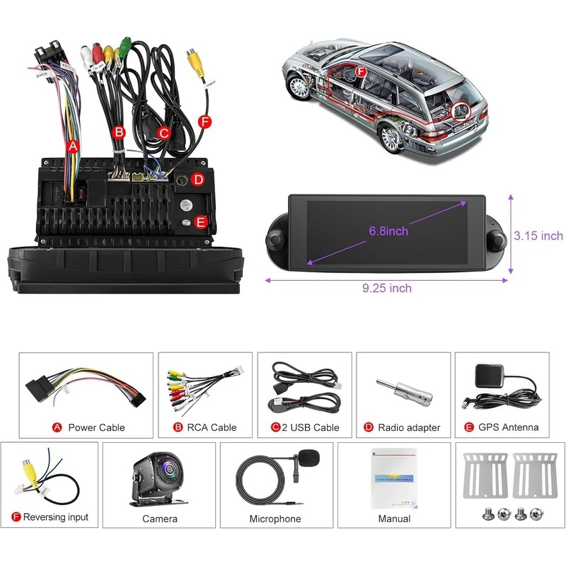 8. Rear dual USB port input: Support rear cable USB input, can play music/movie Or wire CarPlay Android Auto