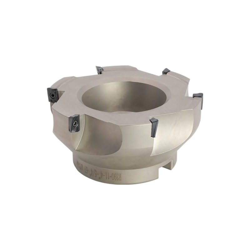 4" 90° Indexable Face (Shell) Mill, for Square Shoulder Milling, 1 1/4" Arbor Hole Diameter, 6 Flute, with 6 pcs R39011T308 Carbide Inserts