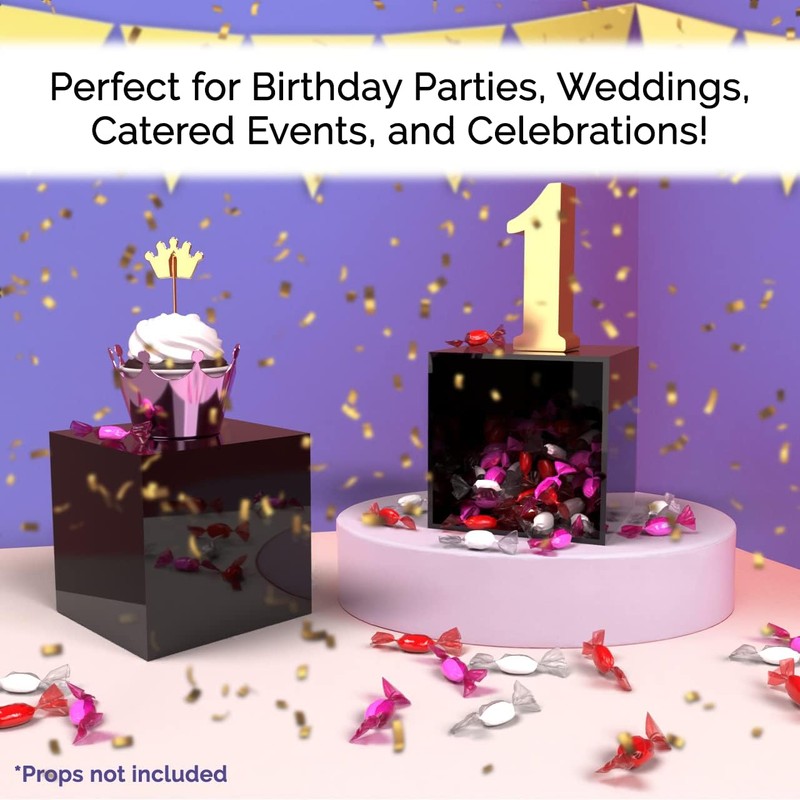 4" Acrylic Display Riser Box with One Open Side Versatile Glossy Black Square Lucite Retail Product Platform or Merchandise Storage Bin No Assembly by Marketing Holders