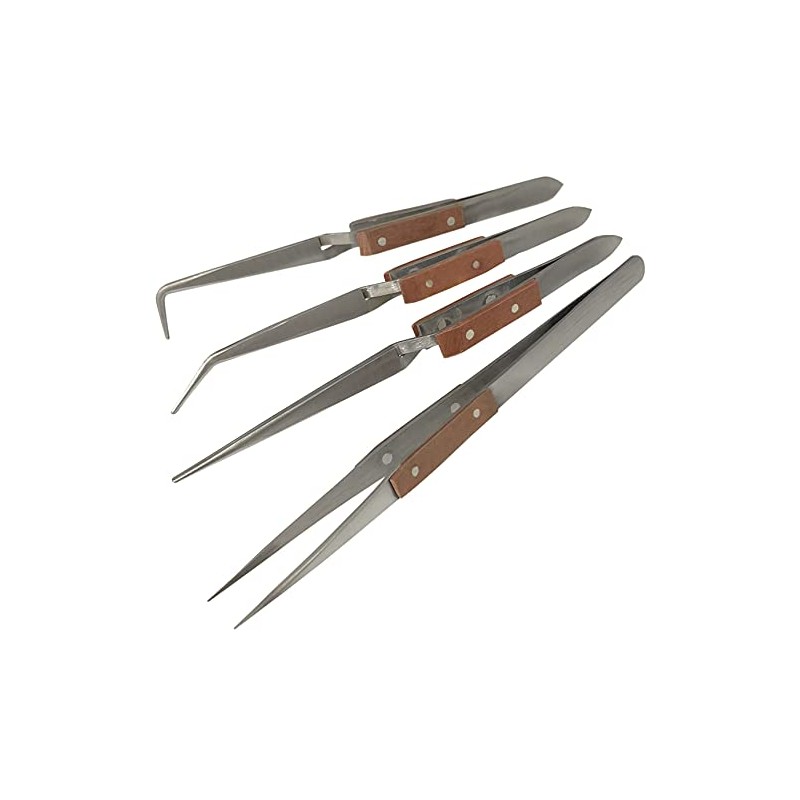 4 ANGLED straight self locking soldering tweezers watch jewellers hand free set (120)