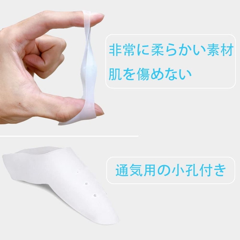• 素材は抗菌・防臭加工を施した高品質シリコン。歩行時の衝撃を抑え足指をやさしく保護します。柔らかいシリコンが足指を優しく保護し、抜群な伸縮性が保護力プラス。