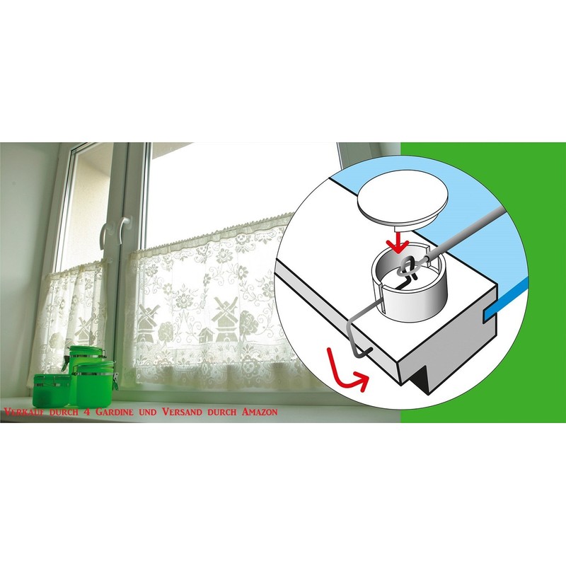 • 'A new and simple way to a curtain wire without damaging the fastened to window frame; ideal for plastic window frames/Aluminium/wood; Flexible "clamping rod/rail/clip/Spannfix panel curtains and kitchen curtains.