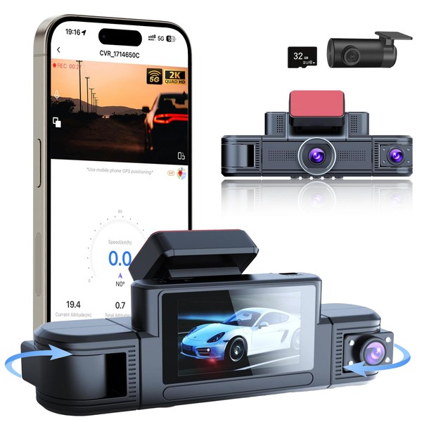 4 Camera Dash Camera for Cars Night Vision 2K+1080P+1080P HD Dash cam Front Rear Car Camera Mounted on Top of Dashboard, WiFi Link, Front and Rear Dash Camera, Built-in Camera