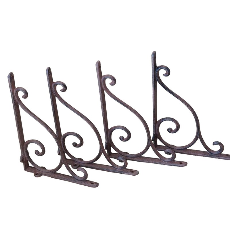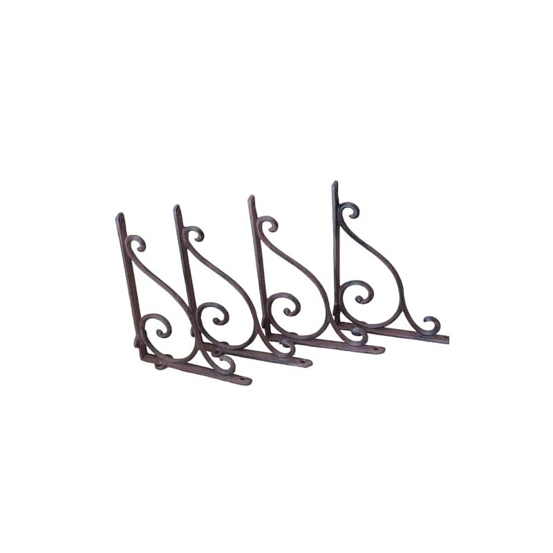 4 Cast Iron Antique Style Brackets with Plant Hooks Garden Braces Shelf Bracket Rustic Vintage Looking