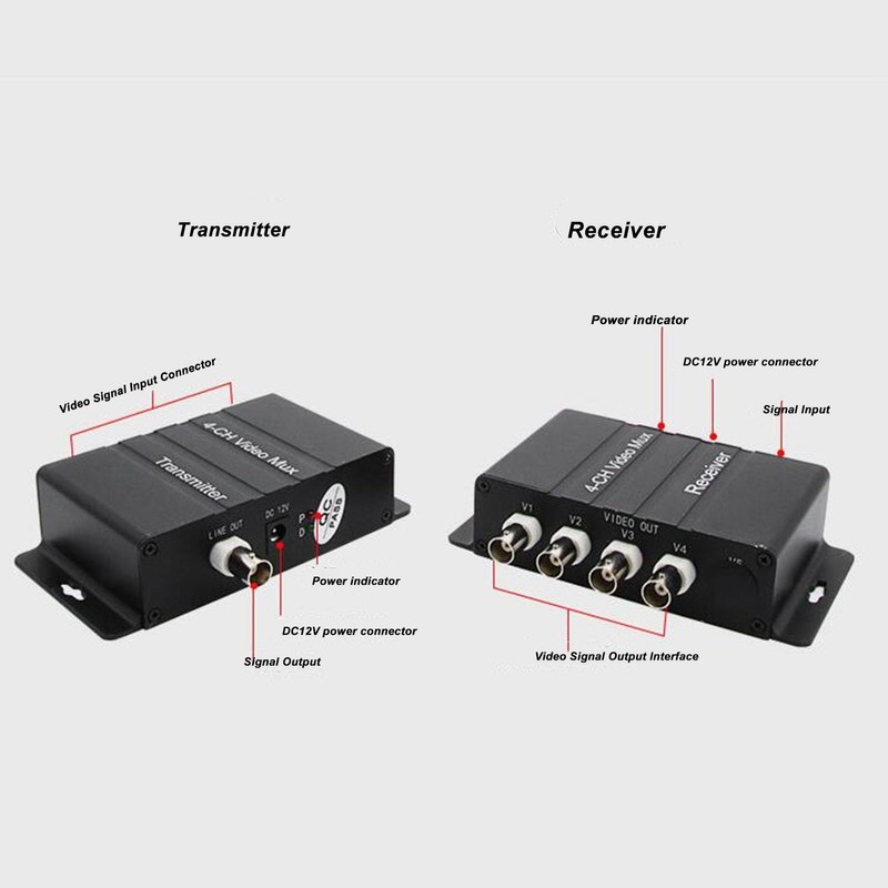 4 Channel Analog Video Multiplexer multiplexer Video BNC Head 4 HD Video to Coaxial Cable Multiplexer Transmitter and Receiver 400M 3 Channel Superimposed for Security Camera Coaxial Cables