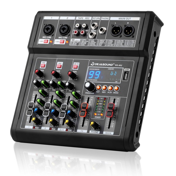 - 【 Cost-Effective Audio Processing】Thanks to its cost-effectiveness, the Dejasound SX Series 4-Channel Audio Mixer is particularly ideal for users on a budget who still care about audio quality. The straightforward interface and durable design meet the needs of daily recording, live streaming, and meetings. It comes with 99 built-in effects, allowing users to easily adjust the sound, creating a more personalized audio experience